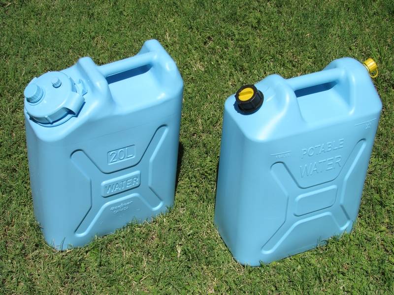 Portable water storage containers for emergency situations, camping and offroading. Plastic water cans are the best option for long term water storage.