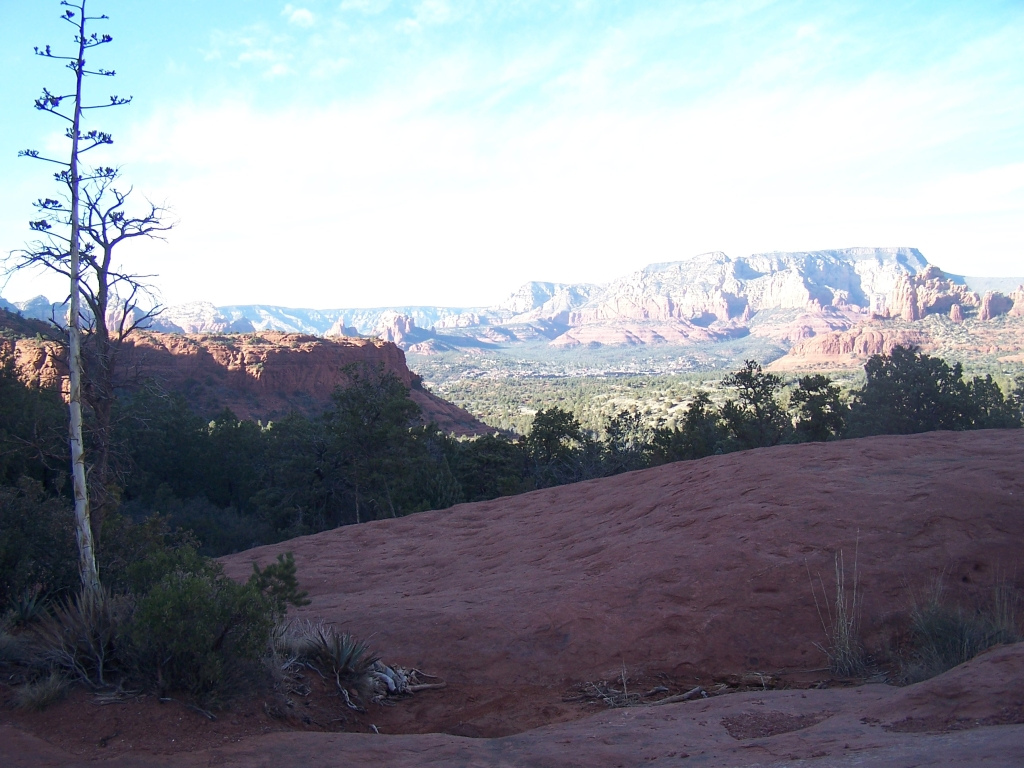 Directions to the Trail: Drive 1.3 miles south on Hwy 179 from the intersection of 89A and 179 in the center of Sedona. Turn left on Morgan Road at a sign for Broken Arrow Estates. Follow Morgan Road through a residential area about a half mile. Continue straight at a “No Outlet” sign onto F.S. 179F.