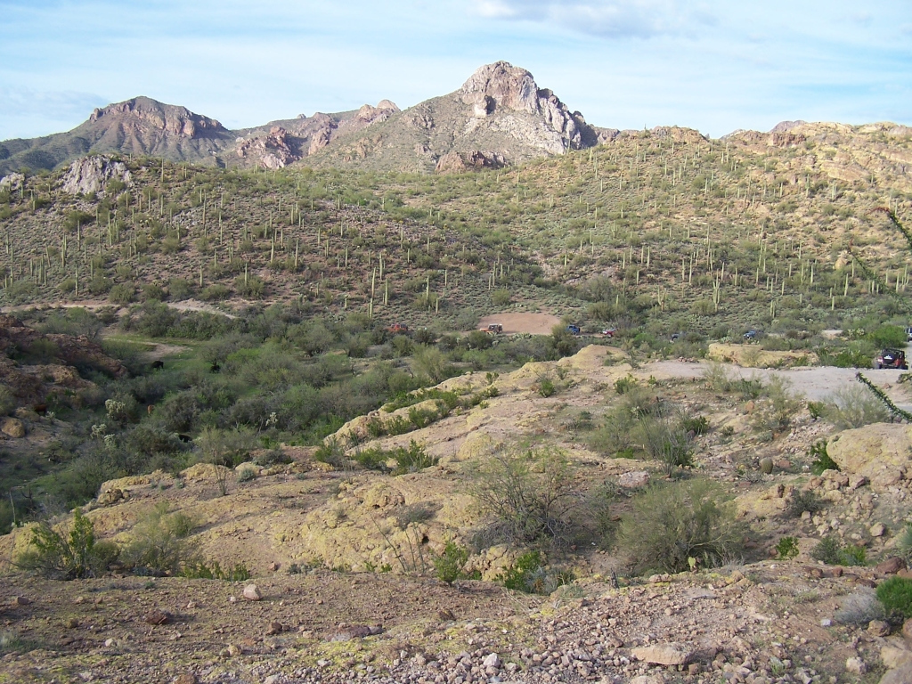 Directions to the Trail: From the intersection of Hwy 60 and Hwy 79 at Florence Junction, drive south on Hwy 79 about 5 miles. Turn left at a flagpole between mile markers 144 and 145 at Cottonwood Canyon Road. Follow Cottonwood Canyon Road east for about 8 miles, until you reach a major T intersection with Mineral Mountain Road. Head south on Box Canyon Road for 5.2 miles, make a sharp left turn uphill out of the wash. The entrance to Coke Ovens trail is 2.1 miles from this spot.