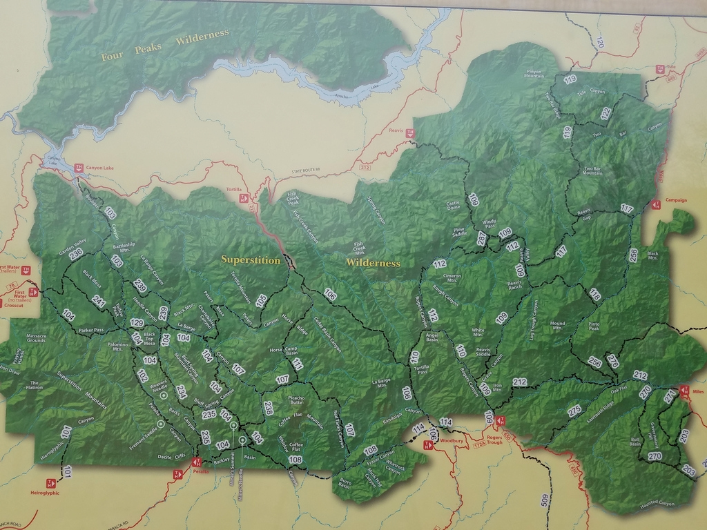 Directions: From Phoenix take US 60 east all the way to Gold Canyon. Turn left on E Peralta Road. Follow E Peralta Road north east. After about a mile it turns into a dirt road. Follow the road for about 7 miles, all the way to the end where you’ll find the trailhead parking lot, with overflow parking lot 1/4 mile back.