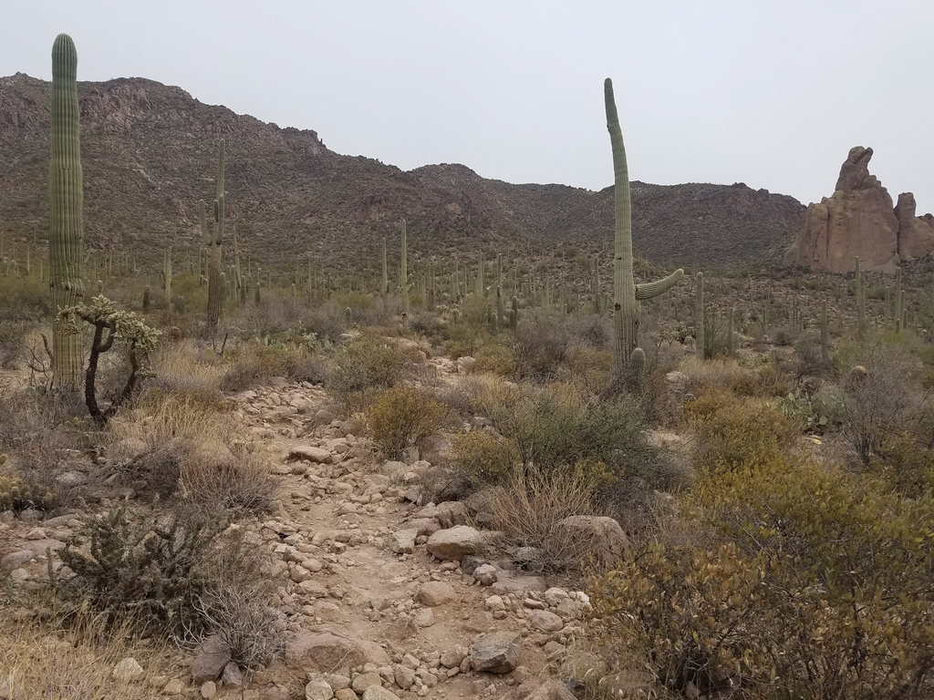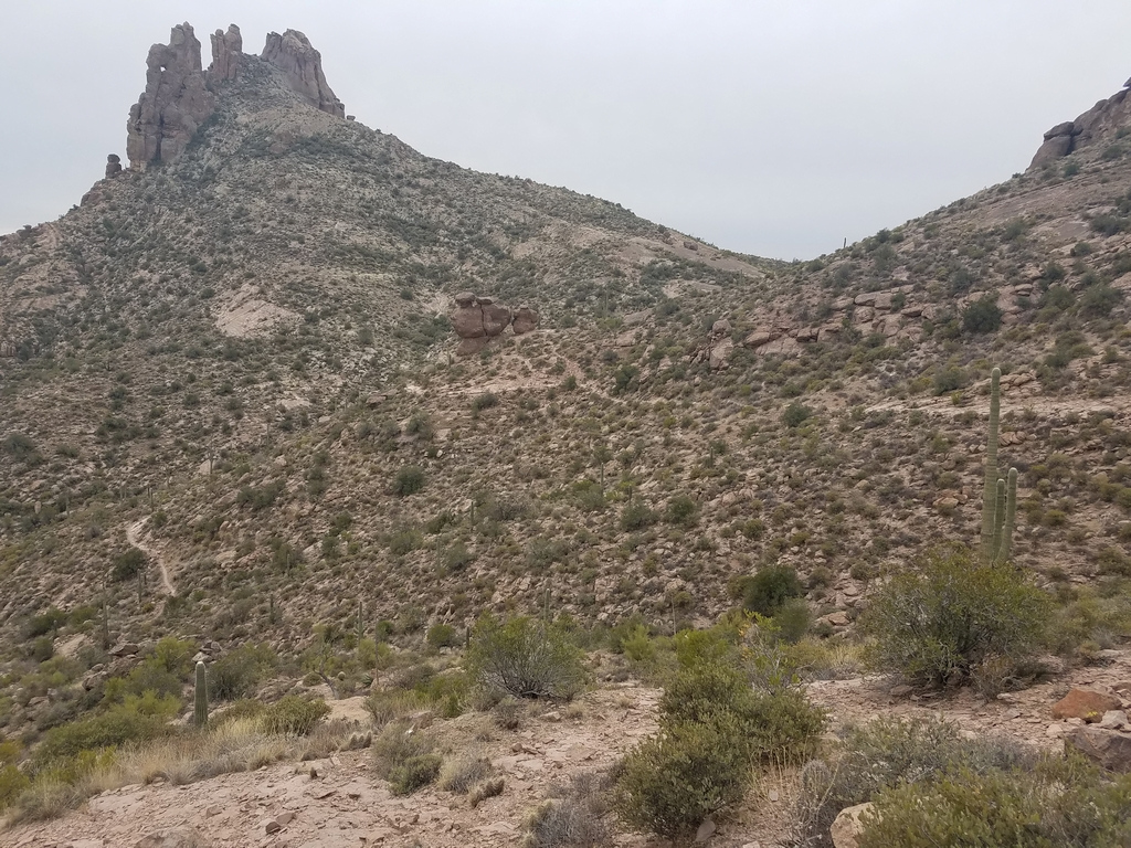 Miners Needle Loop is a moderate, 9-mile hike that follows portions of the Dutchman’s Trail and Bluff Spring Trail as they loop around a rock formation called Miners Needle. It’s located within the Superstition Wilderness. I would highly recommend bringing a hiking partner to complete this loop, since it is a very remote area and in places like this anything can happen. Just in case you come across a rattlesnake, scorpion, a spider, or weather suddenly turns for the worst, you would be safer having another person with you. And as with any hike in the desert, bring plenty of water.