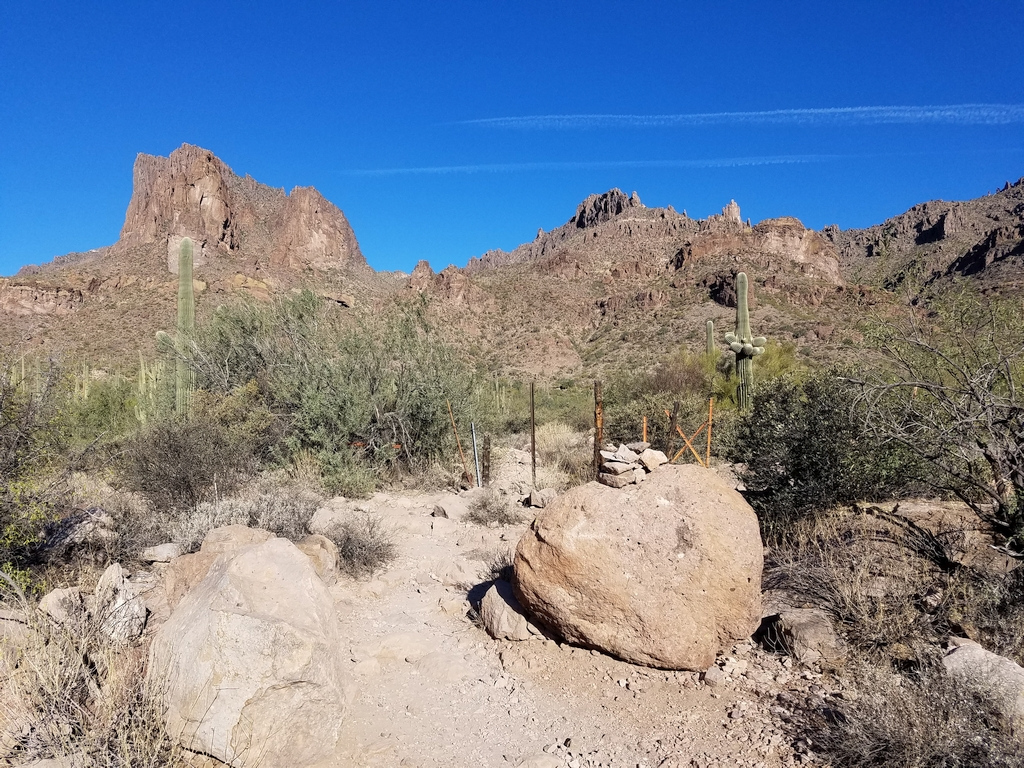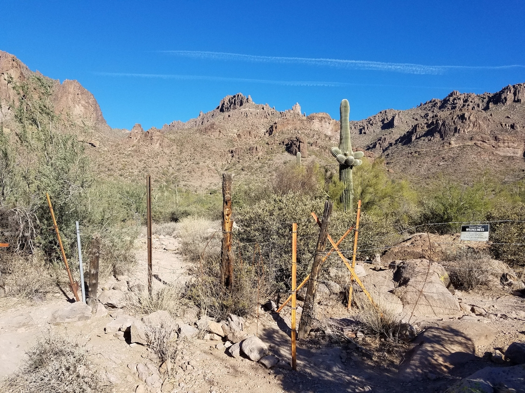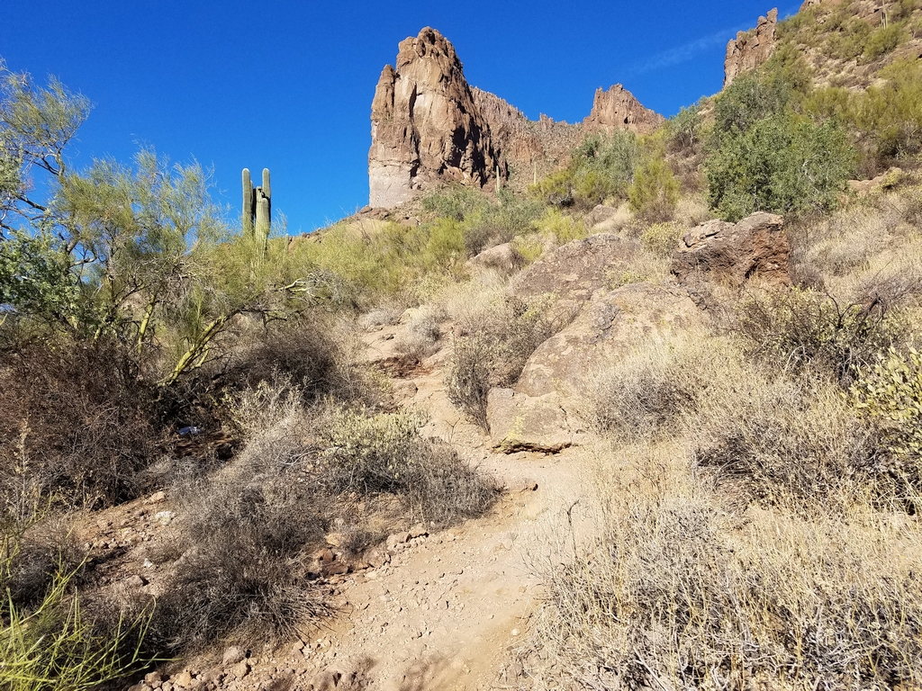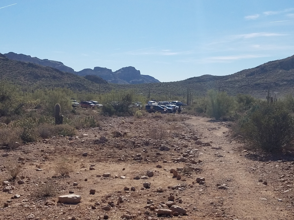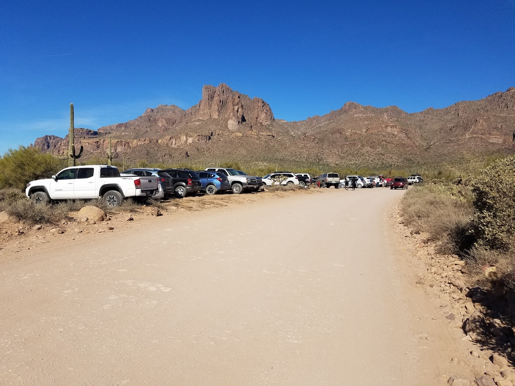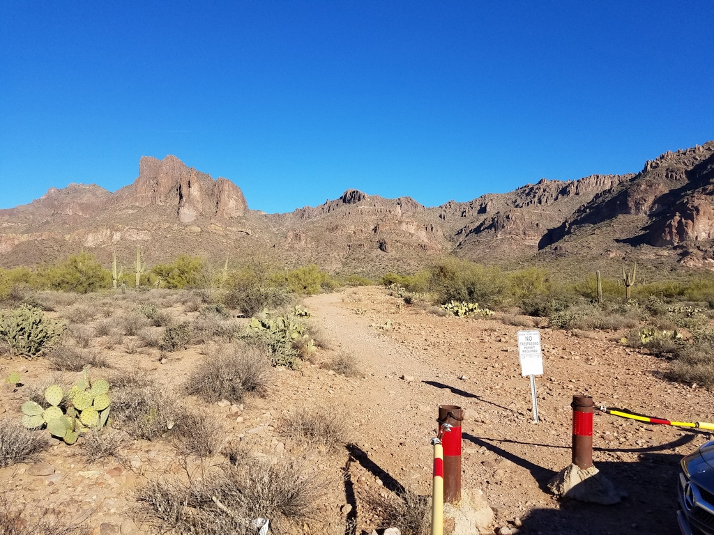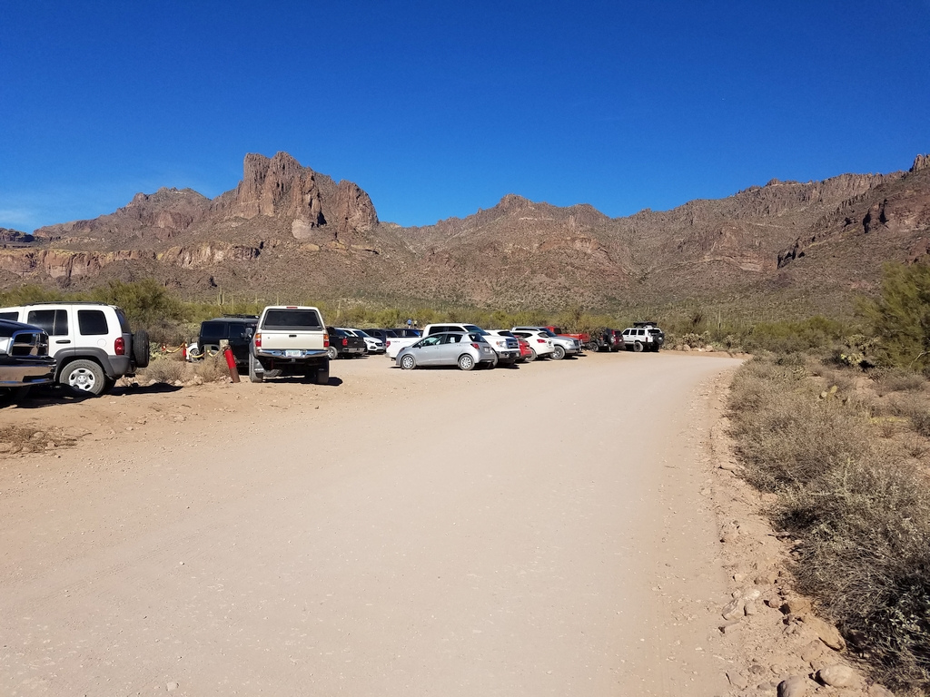 Directions: From Phoenix take US 60 east all the way to Gold Canyon. Turn left on E Peralta Road. Follow E Peralta Road north east. After about a mile it turns into a dirt road. Follow the road for about 6 miles, the small parking lot is on the west side of the road.