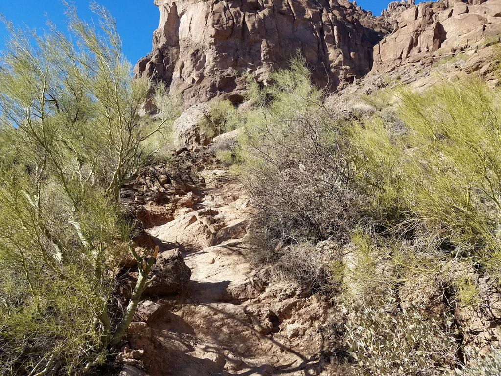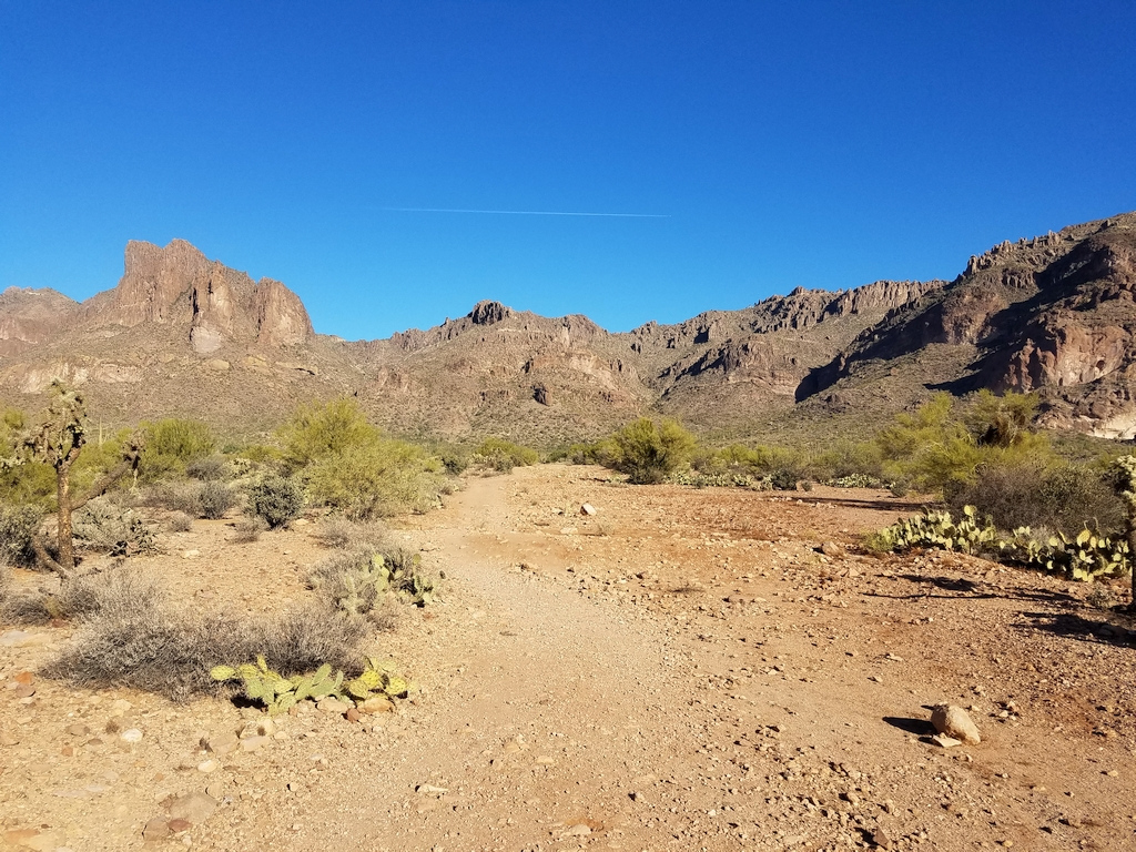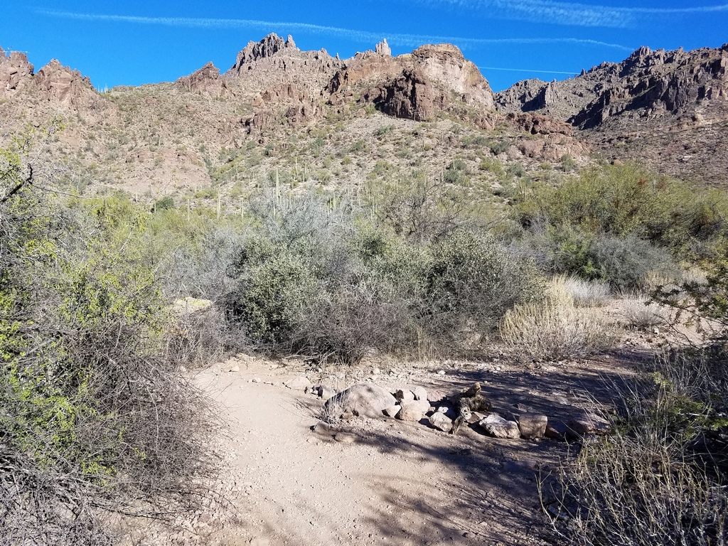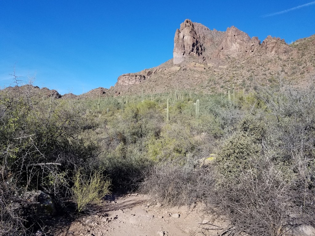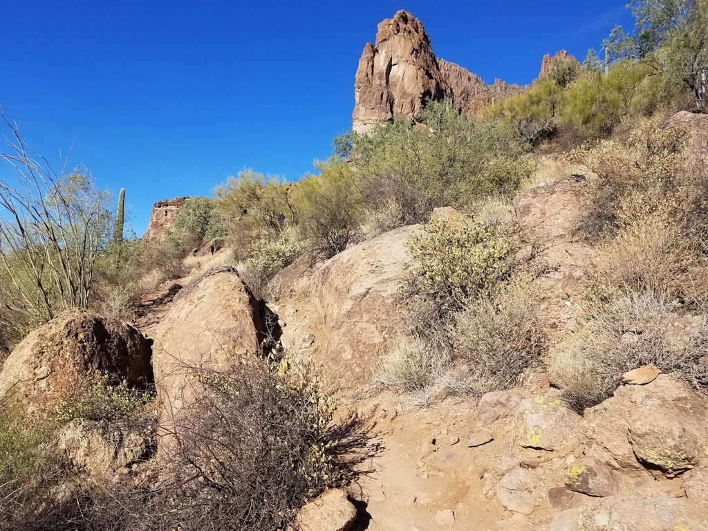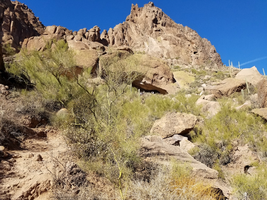Directions: From Phoenix take US 60 east all the way to Gold Canyon. Turn left on E Peralta Road. Follow E Peralta Road north east. After about a mile it turns into a dirt road. Follow the road for about 6 miles, the small parking lot is on the west side of the road.