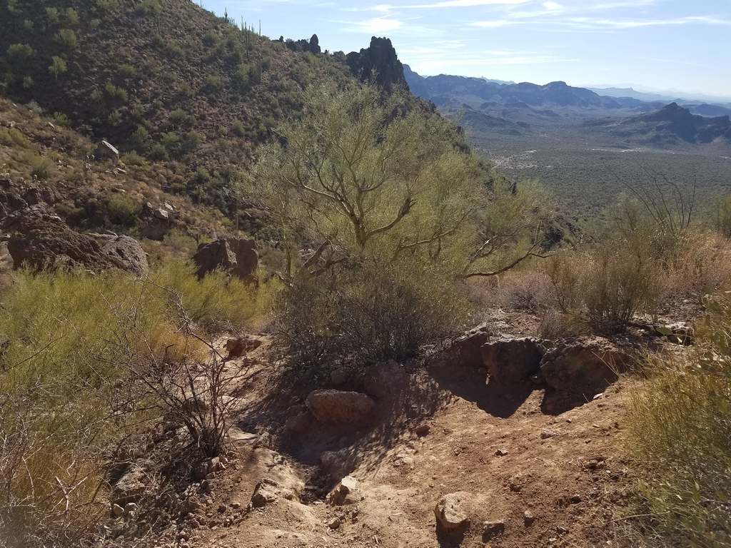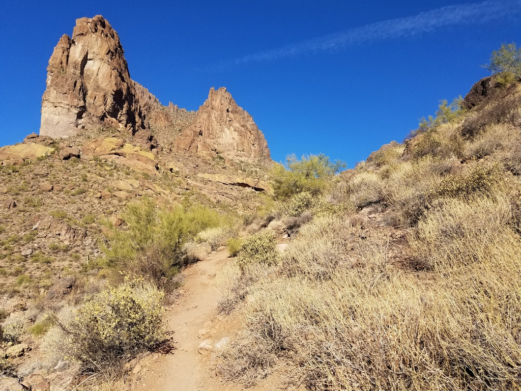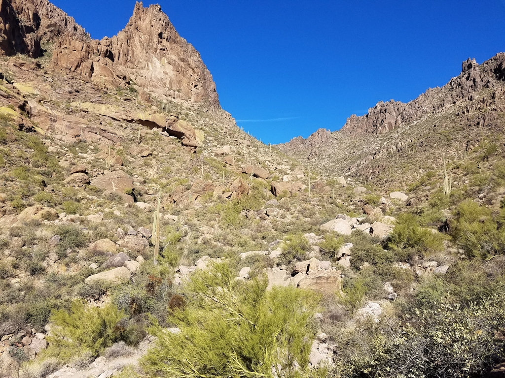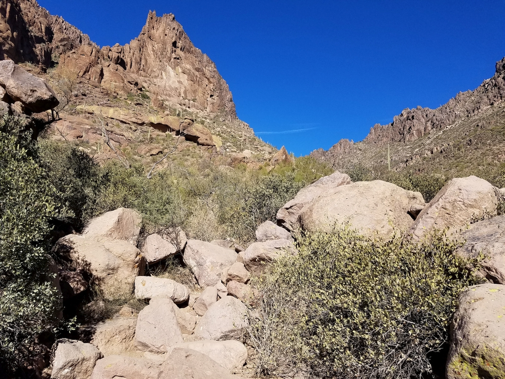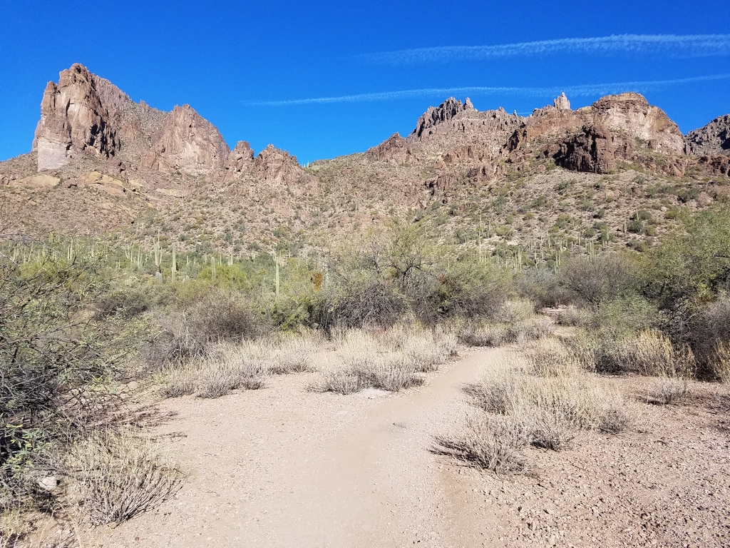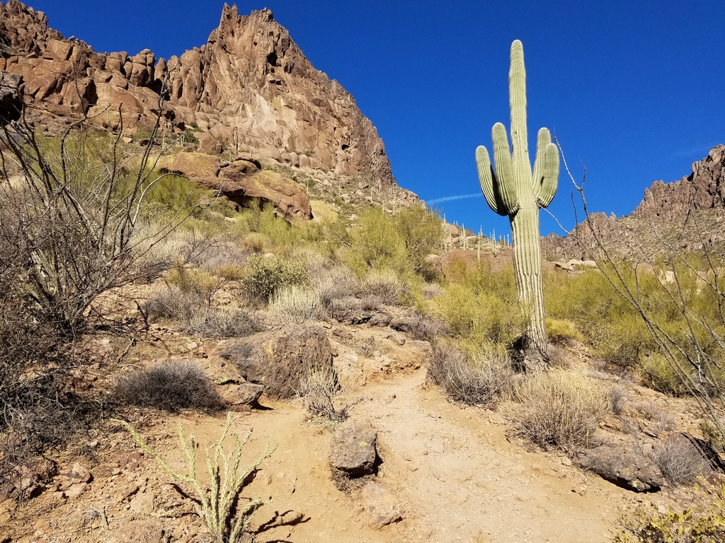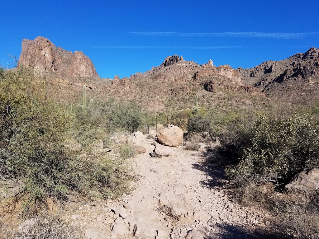 Directions: From Phoenix take US 60 east all the way to Gold Canyon. Turn left on E Peralta Road. Follow E Peralta Road north east. After about a mile it turns into a dirt road. Follow the road for about 6 miles, the small parking lot is on the west side of the road.