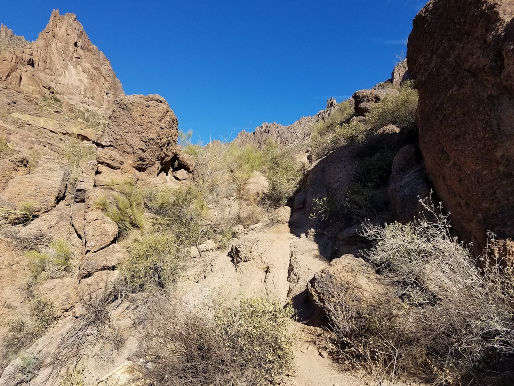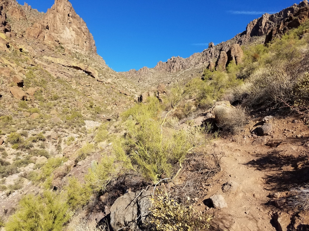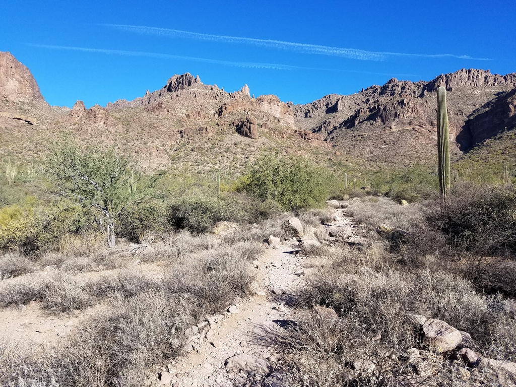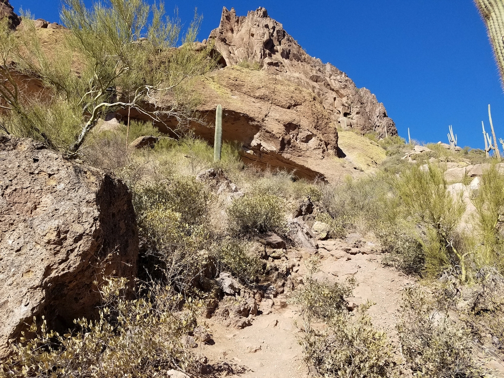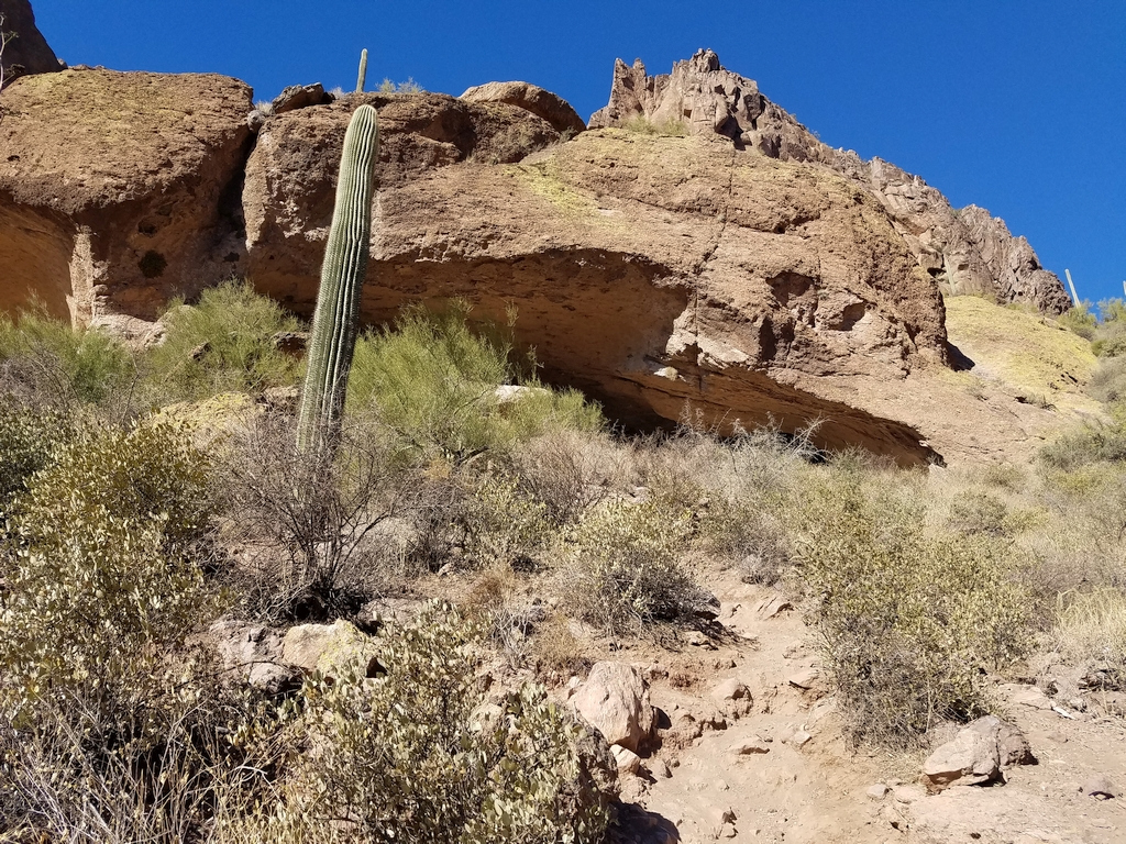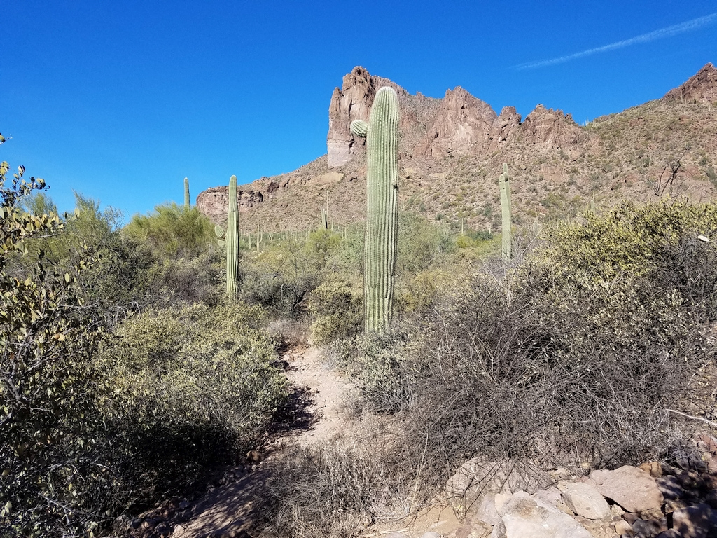 Directions: From Phoenix take US 60 east all the way to Gold Canyon. Turn left on E Peralta Road. Follow E Peralta Road north east. After about a mile it turns into a dirt road. Follow the road for about 6 miles, the small parking lot is on the west side of the road.