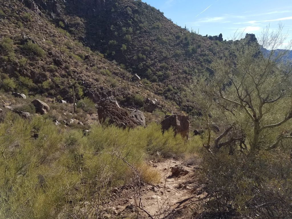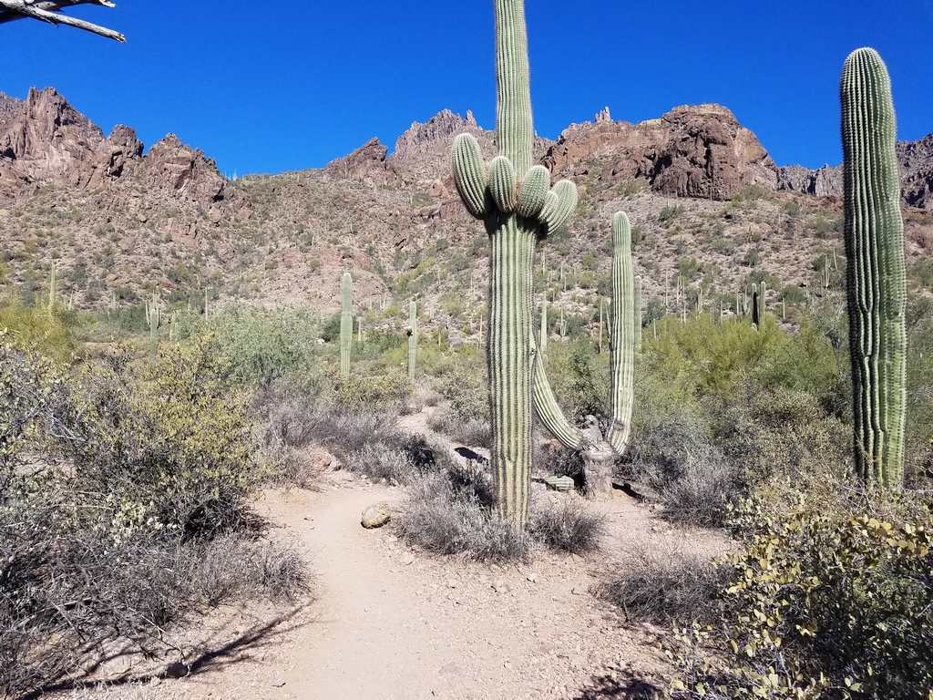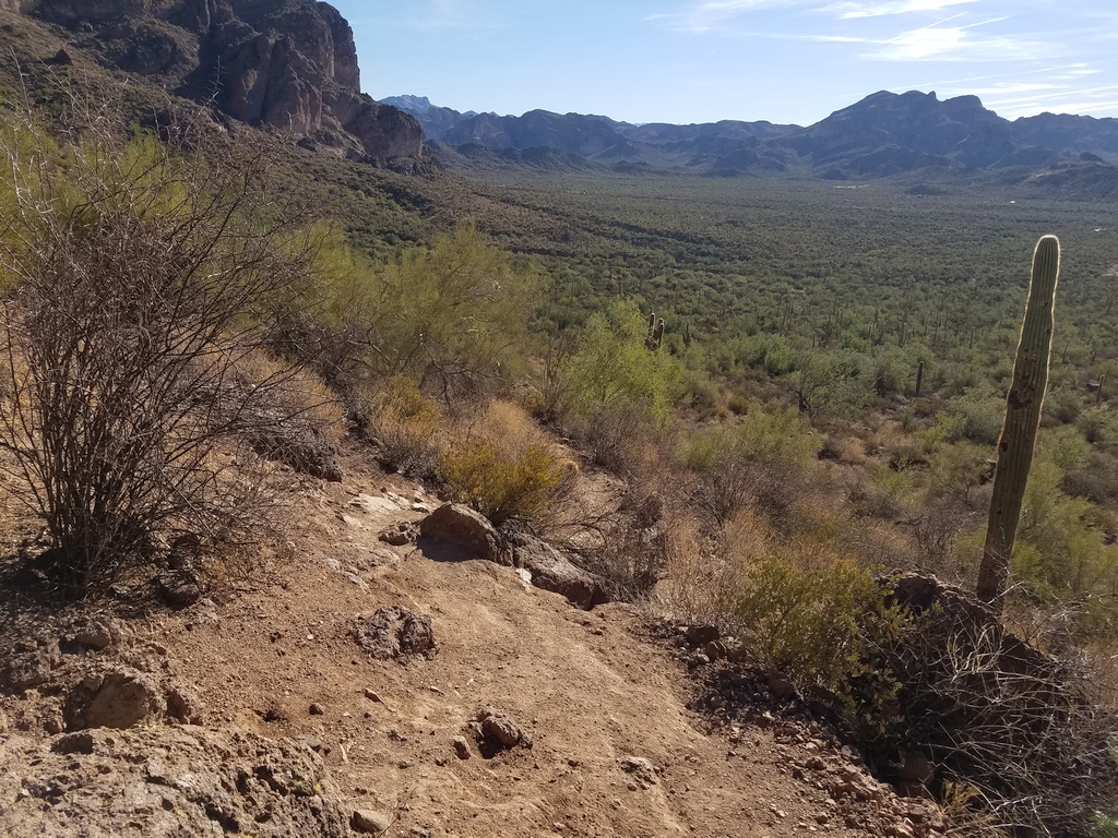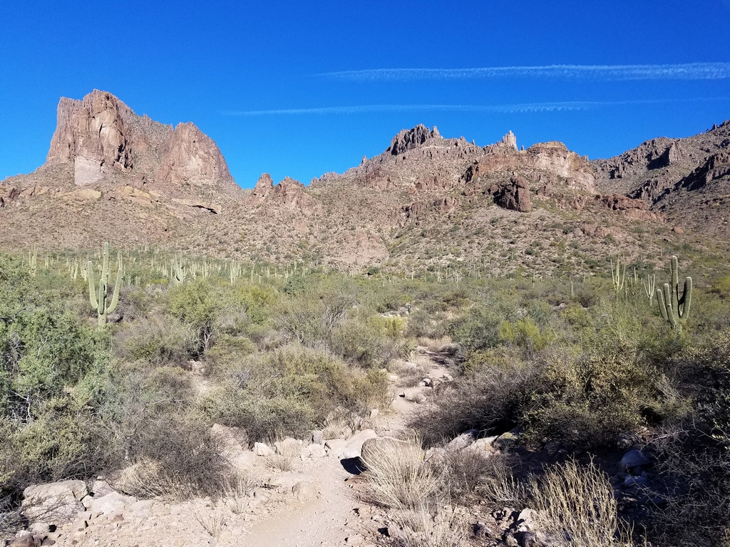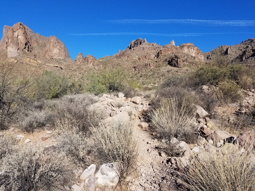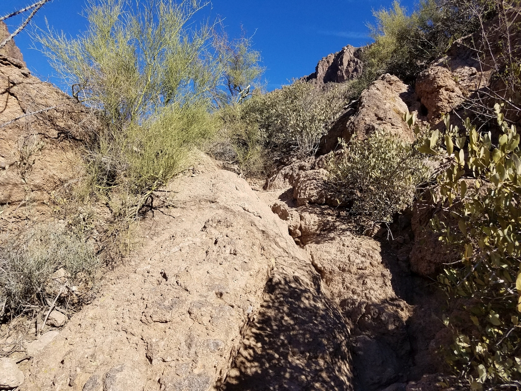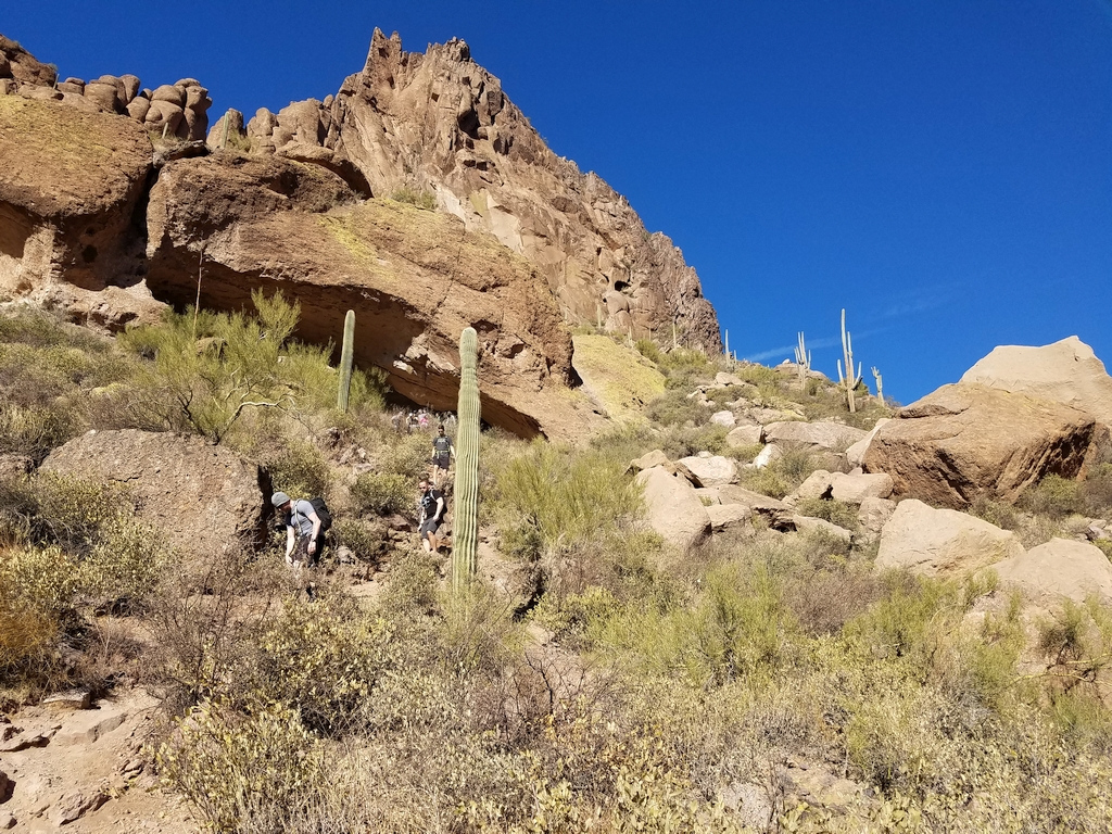 Directions: From Phoenix take US 60 east all the way to Gold Canyon. Turn left on E Peralta Road. Follow E Peralta Road north east. After about a mile it turns into a dirt road. Follow the road for about 6 miles, the small parking lot is on the west side of the road.