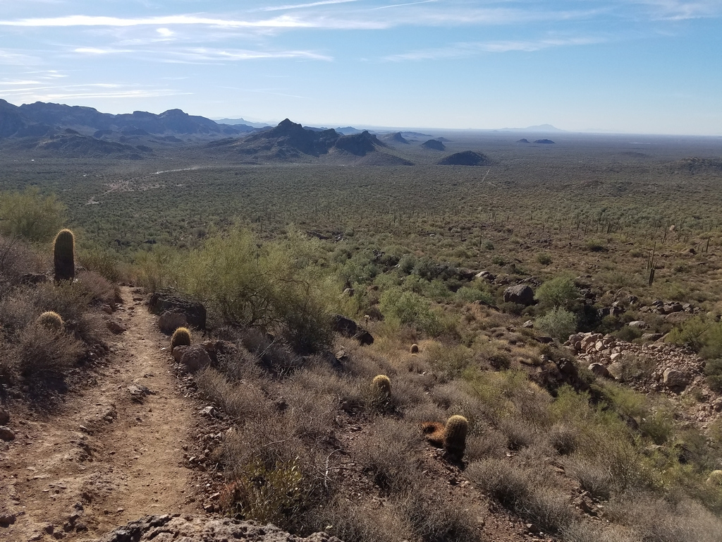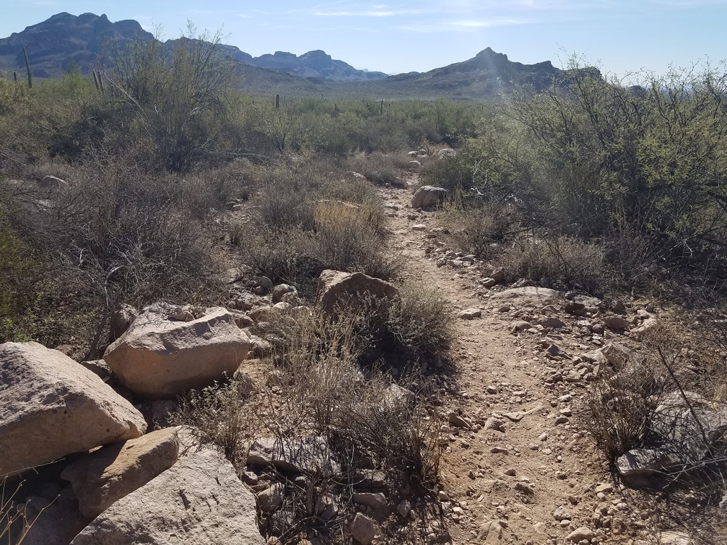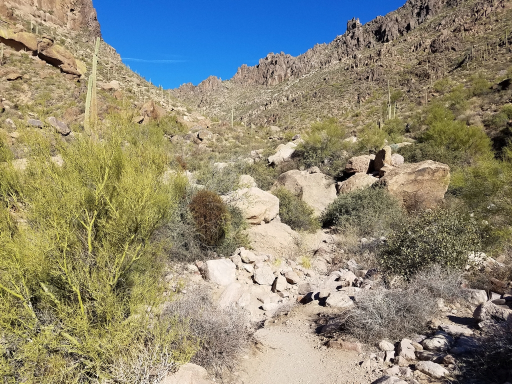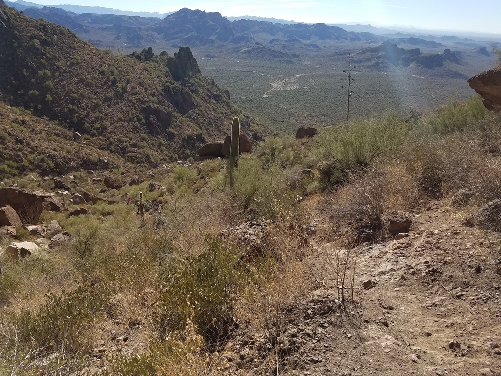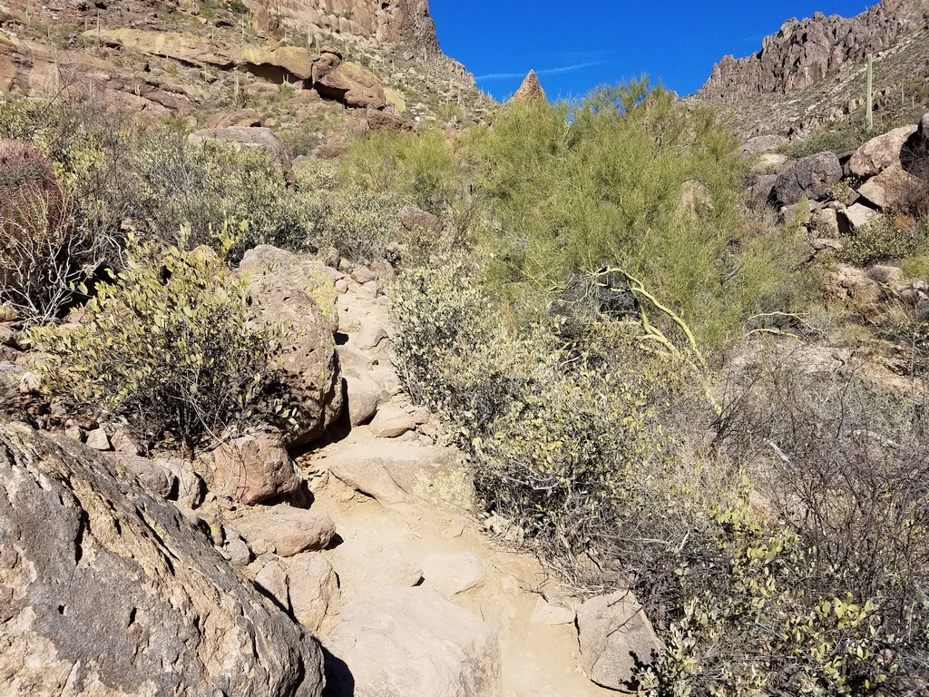 From the trailhead you will follow the old and wide dirt road for about a mile until you reach the wilderness fence line. Follow the trail through the fence and you’ll notice the trail becomes much more narrow and rocky and it starts to ascend gradually. The ascend gets steeper the closer you get to the end.