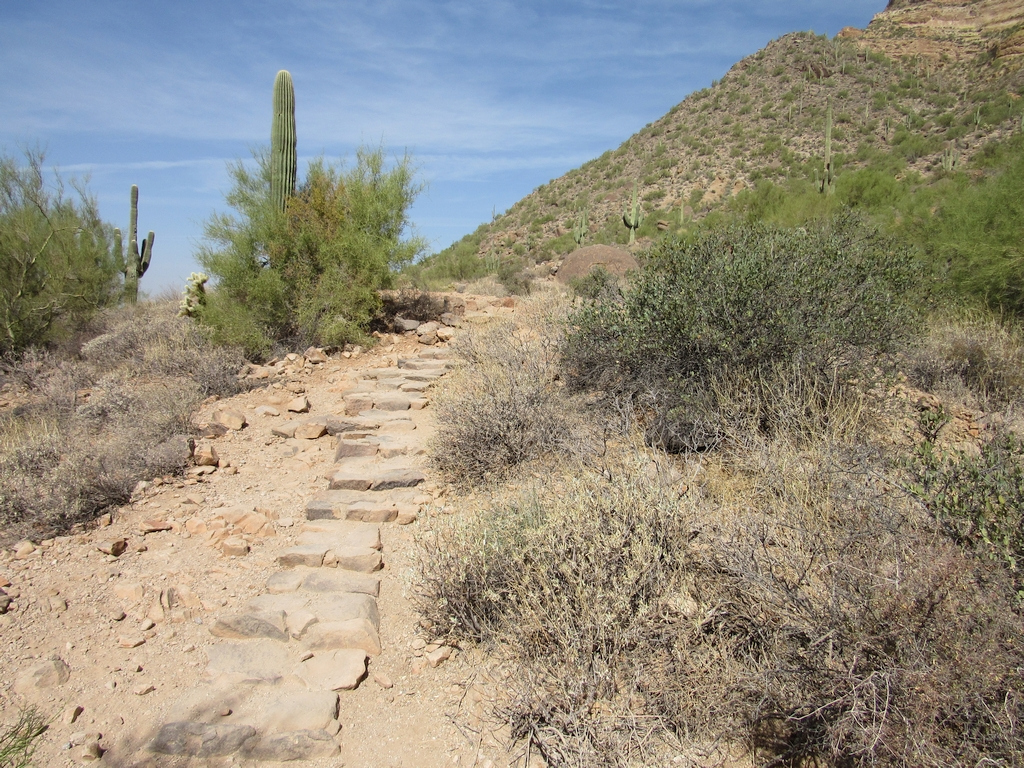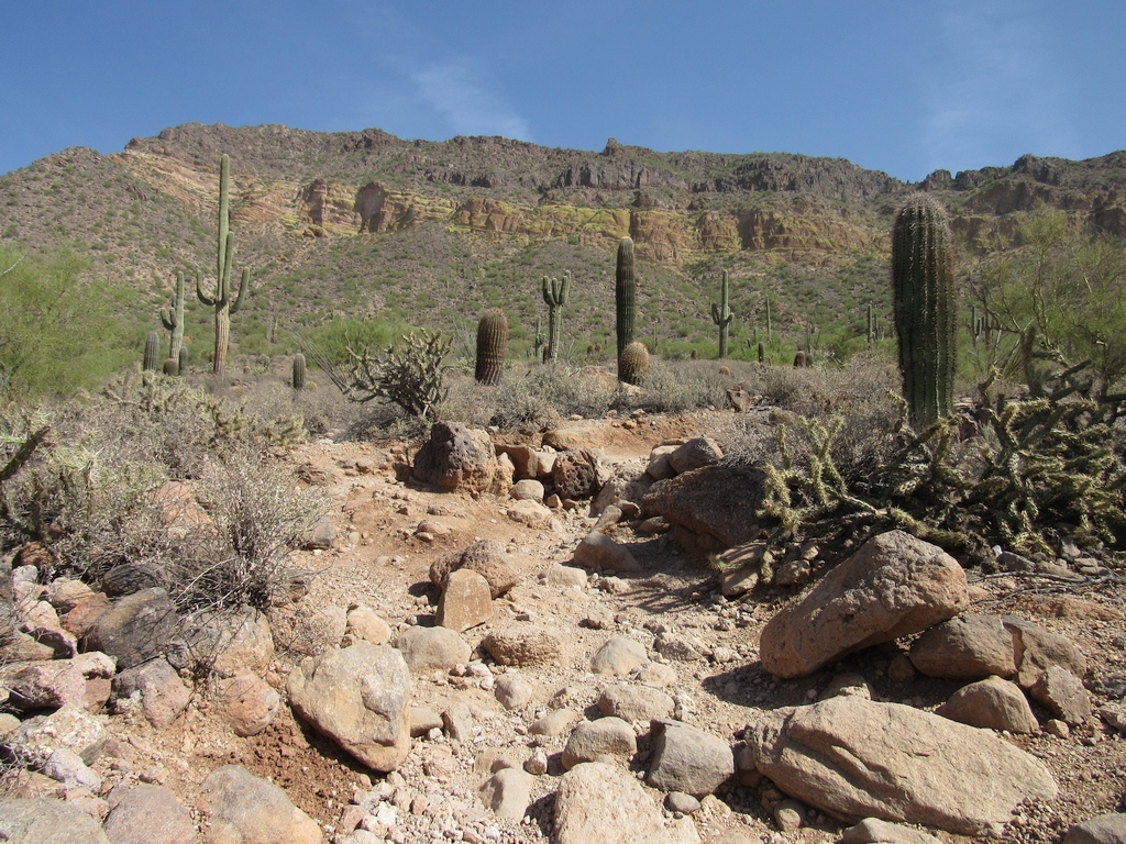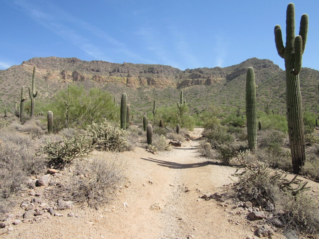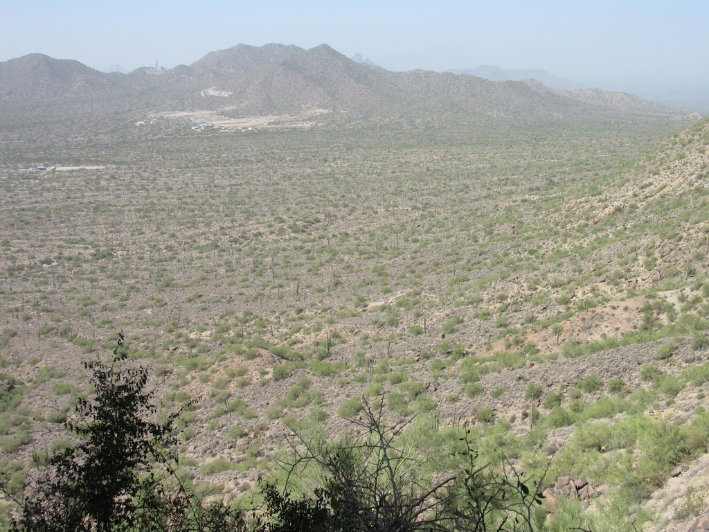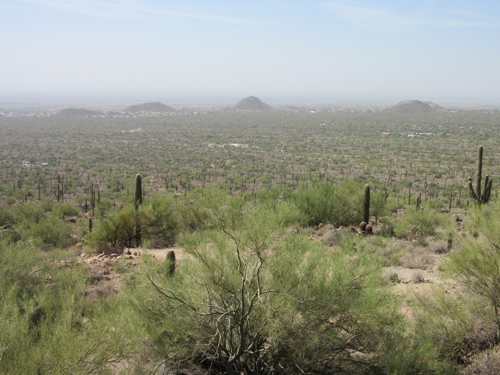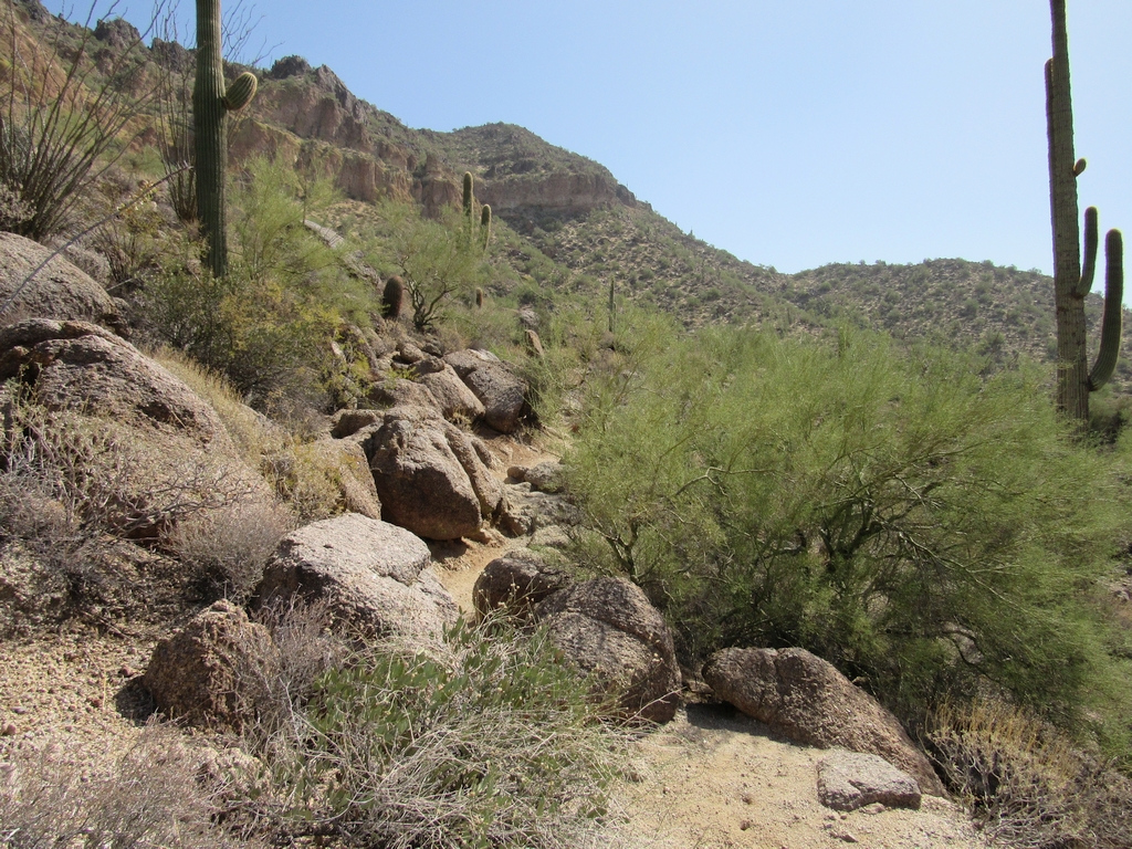 Desert cacti and palo verde dominate the landscape. Heavy concentrations of Saguaros pack the area.