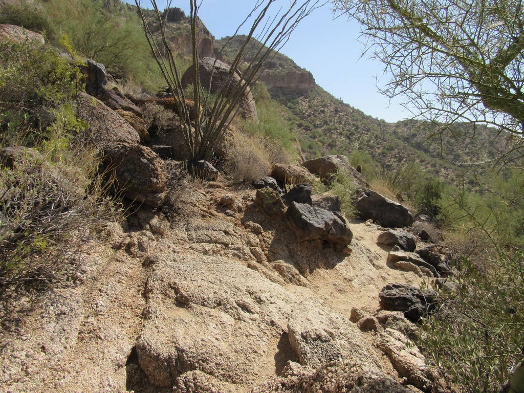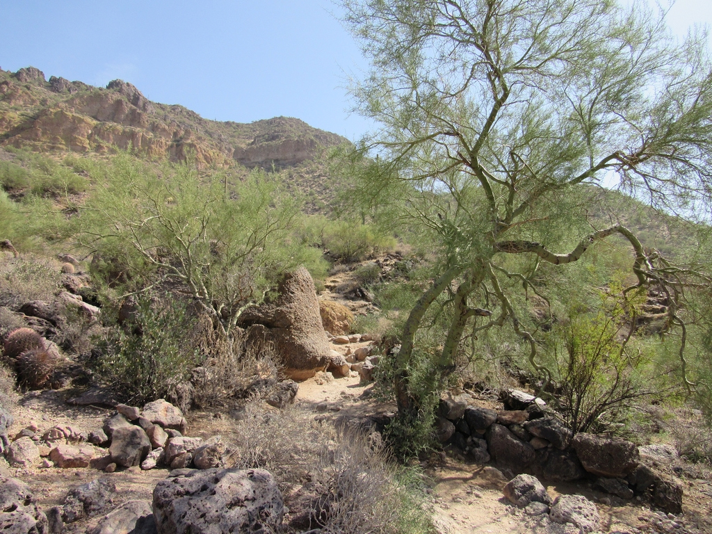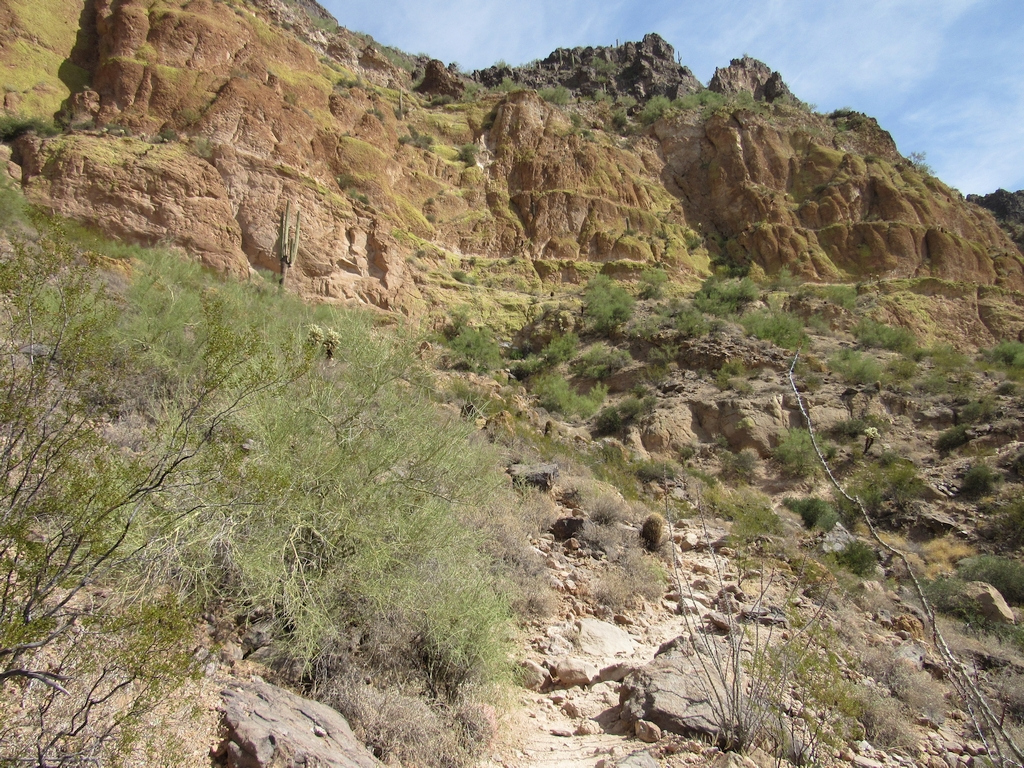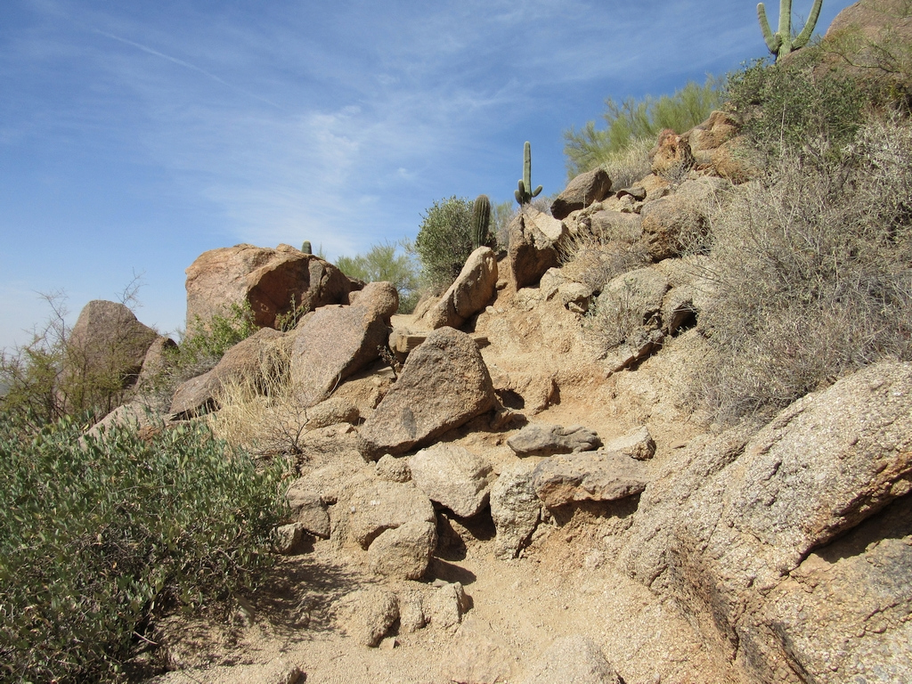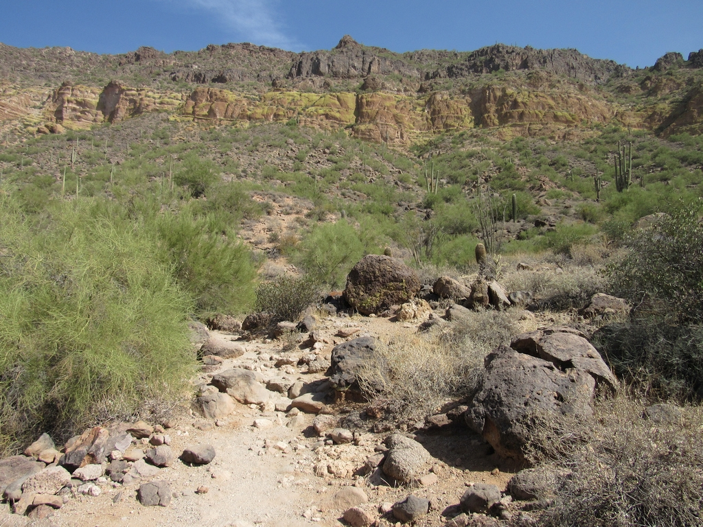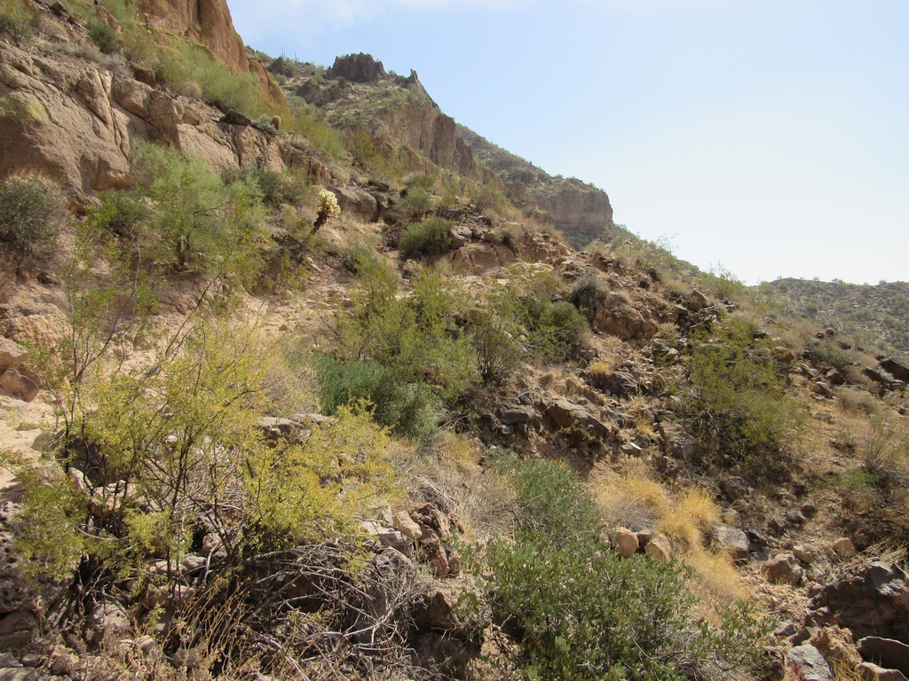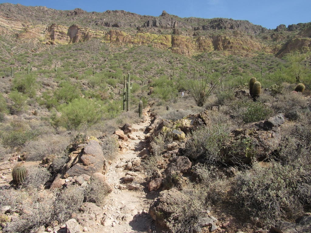 Desert cacti and palo verde dominate the landscape. Heavy concentrations of Saguaros pack the area.