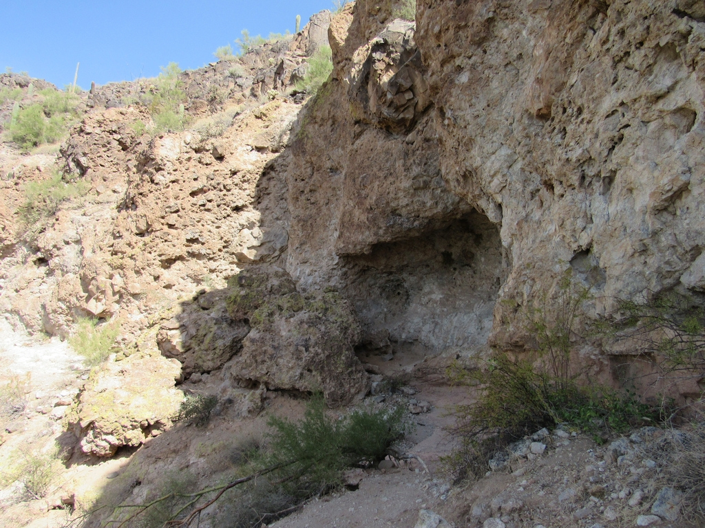 Not long after starting on the trail you will junction with Pass Mountain Trail. Continue straight and gently ascend towards the mountainside you see in front of you. The trail will continue to ascend for over 800 ft. over 1.5 miles and will eventually bend right towards the “cave”. You will see a sign pointing left towards the cave. The “cave” at the end of this trail is not so much a dark, cavernous hole full of bats or anything that dramatic. This cave is about 10 to 12 feet high and is more like a gash carved out of the side of the mountain. It provides welcome shade in the summer, and a place to catch your breath before beginning the descent. The real treat at the end of your hike is the nice views that look over the valley floor.